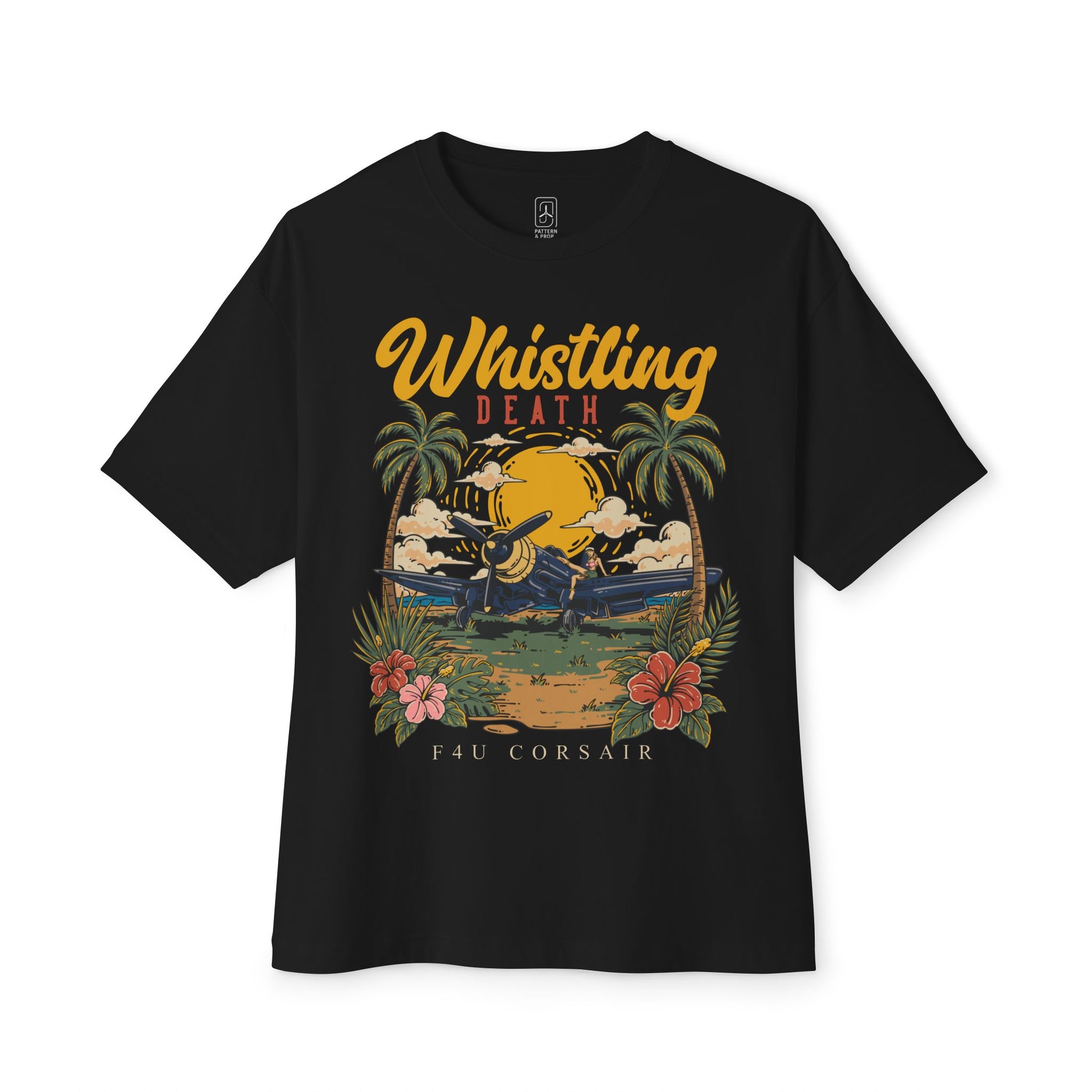 Step into the daring spirit of WWII aviation with the F4U Corsair “Whistling Death” T-shirt, a tribute to the legendary fighter that dominated the skies over the Pacific. Nicknamed by enemy forces for the eerie whistle of its engine during dives, the Corsair became a feared and respected symbol of American air power. This vibrant design captures the aircraft in a tropical setting, complete with palm trees, hibiscus flowers, and a vintage pin-up figure—evoking the island bases and brave pilots who made history.